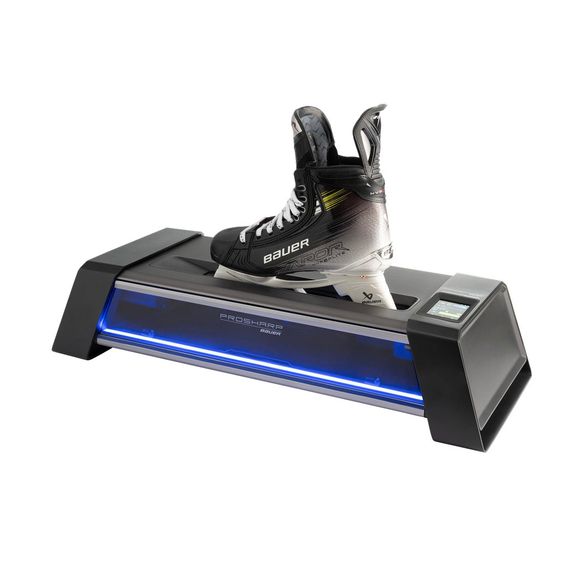 Presenting the Bauer Prosharp Advantedge Skate Sharpening Machine - revolutionizing at-home skate care. Eliminate uncertainty with automated precision in sharpening, clamping, and entry/exit points. Obtain reliable, precise outcomes with a simple button press for optimal ice performance. Model 1062222