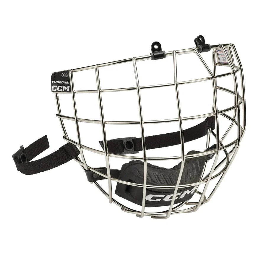 The CCM FM580 cages offer a classic design with a durable carbon steel wire frame to provide maximum protection. Thin round wire offers excellent vision and a multi-density chin cup with a micro-wick lining ensures comfort and dryness while in use and provides high levels of protection from impacts.