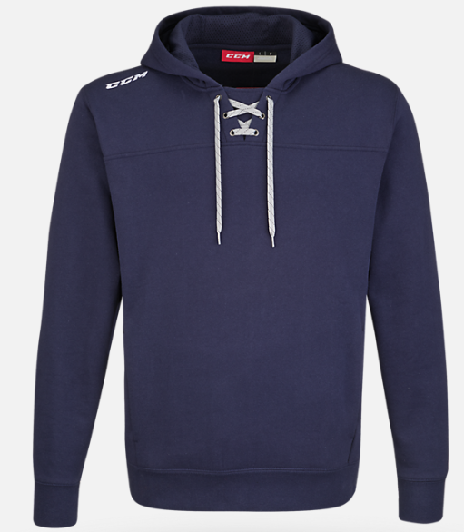 Team spirit is at an all-time high with the Team Fleece Hood from CCM. With a hidden kangaroo style pocket that can also be used to be embellished with a team logo, this jersey-inspired fleece hoodie looks good and feels great too.